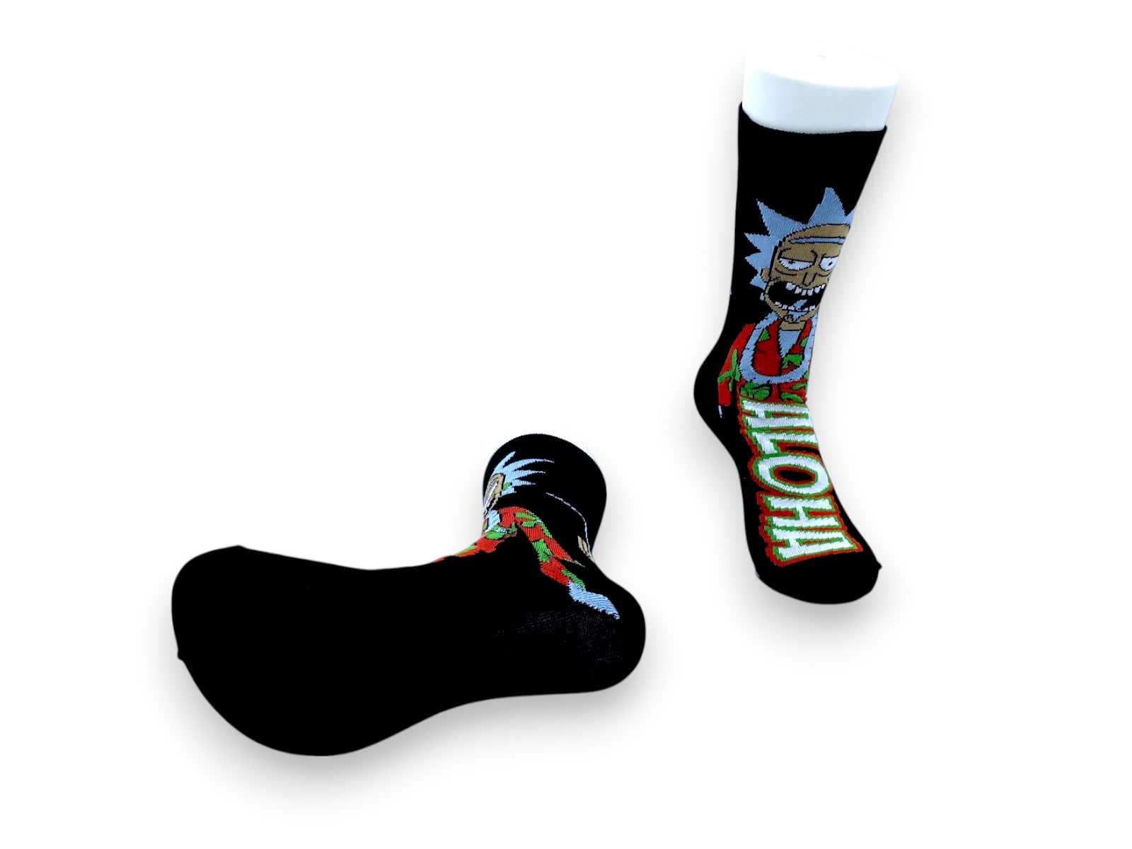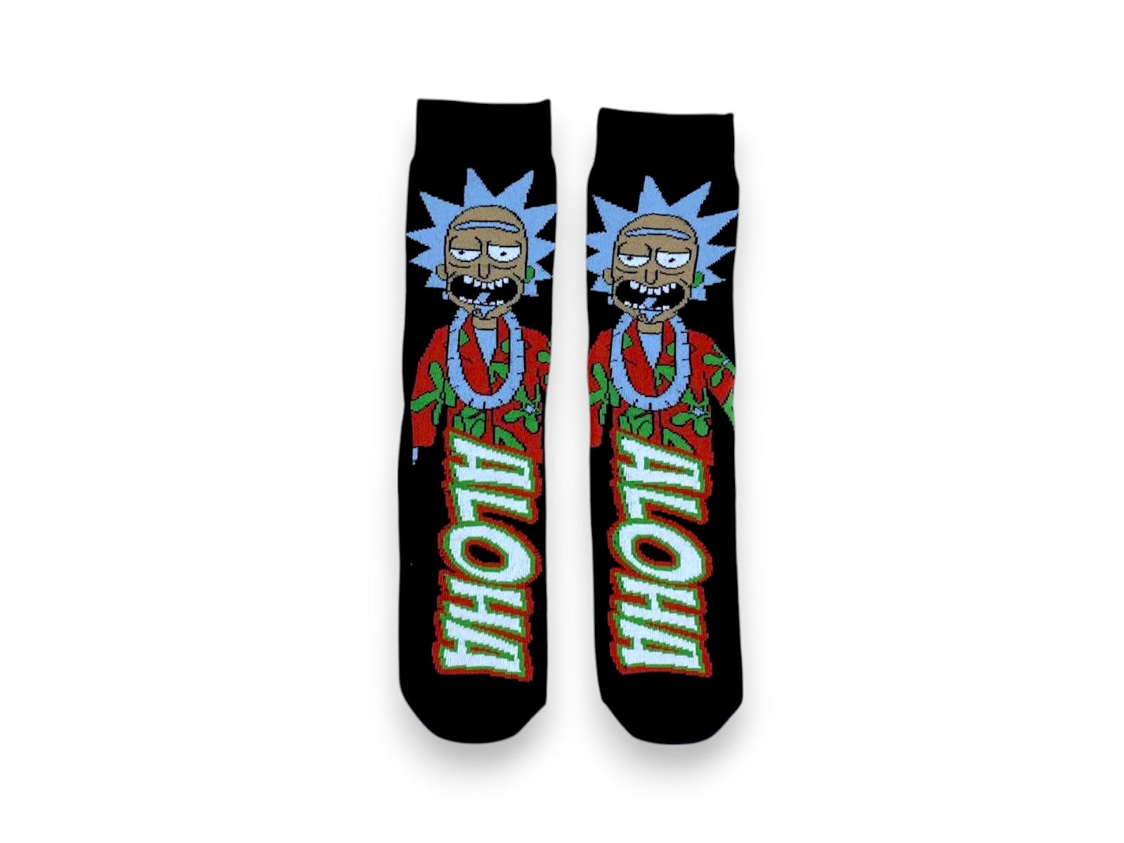 Step into comfort and style with the Rick & Morty Aloha Rick socks! Featuring Rick rocking his Hawaiian groove, these cool socks are perfect for fans who want to add a funny twist to their outfit. Soft and comfy, they’re great for lounging or showing off your love for the show with a splash of tropical fun.